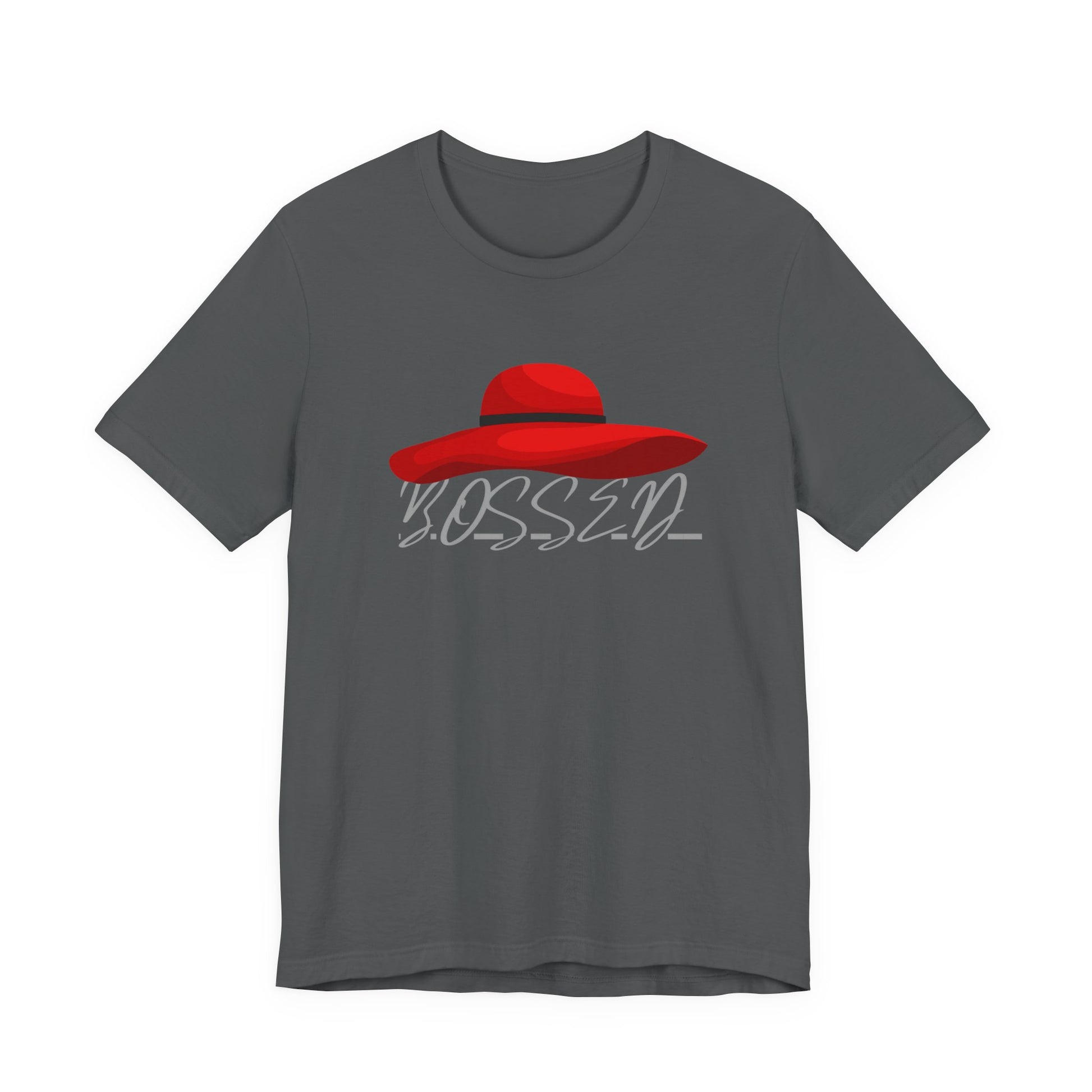 Bold 'BOSSED' Red Hat Unisex Tee, Casual Fashion, Gift for Her, Birthday Shirt, Everyday Wear, Statement Top, Trendy Apparel