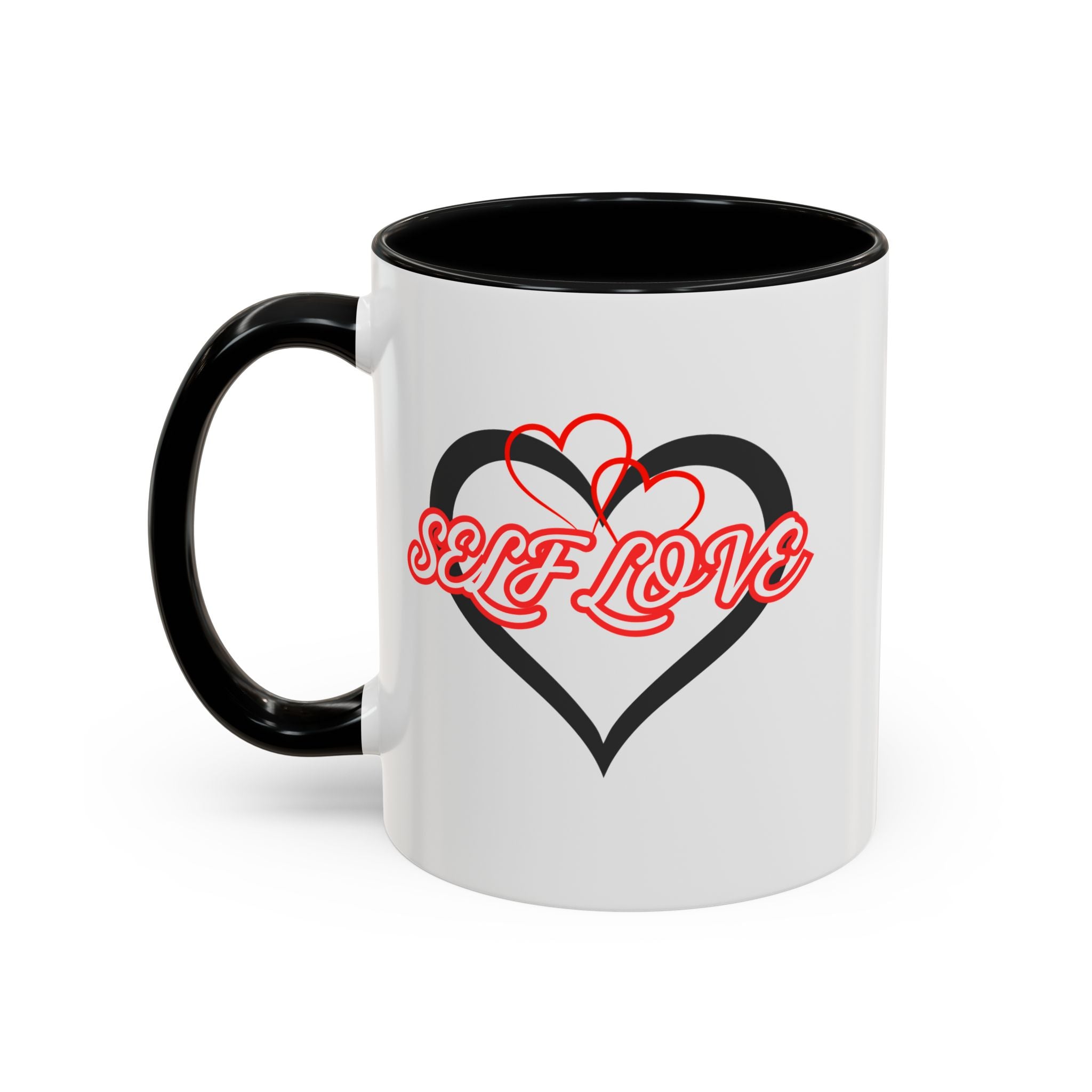 Self Love Heart Accent Coffee Mug — Inspirational 11/15oz Ceramic