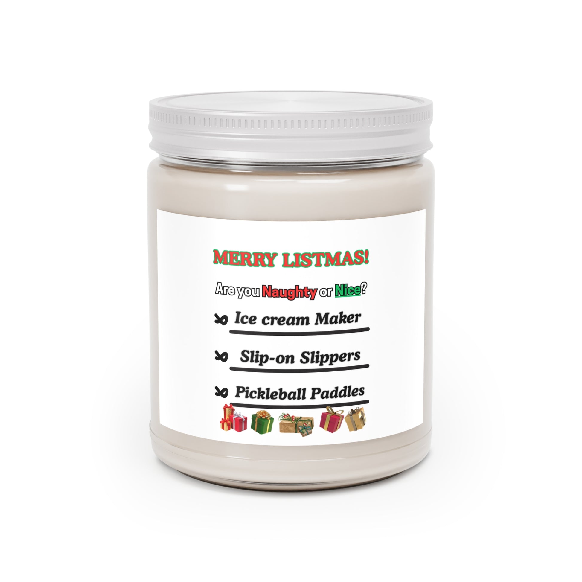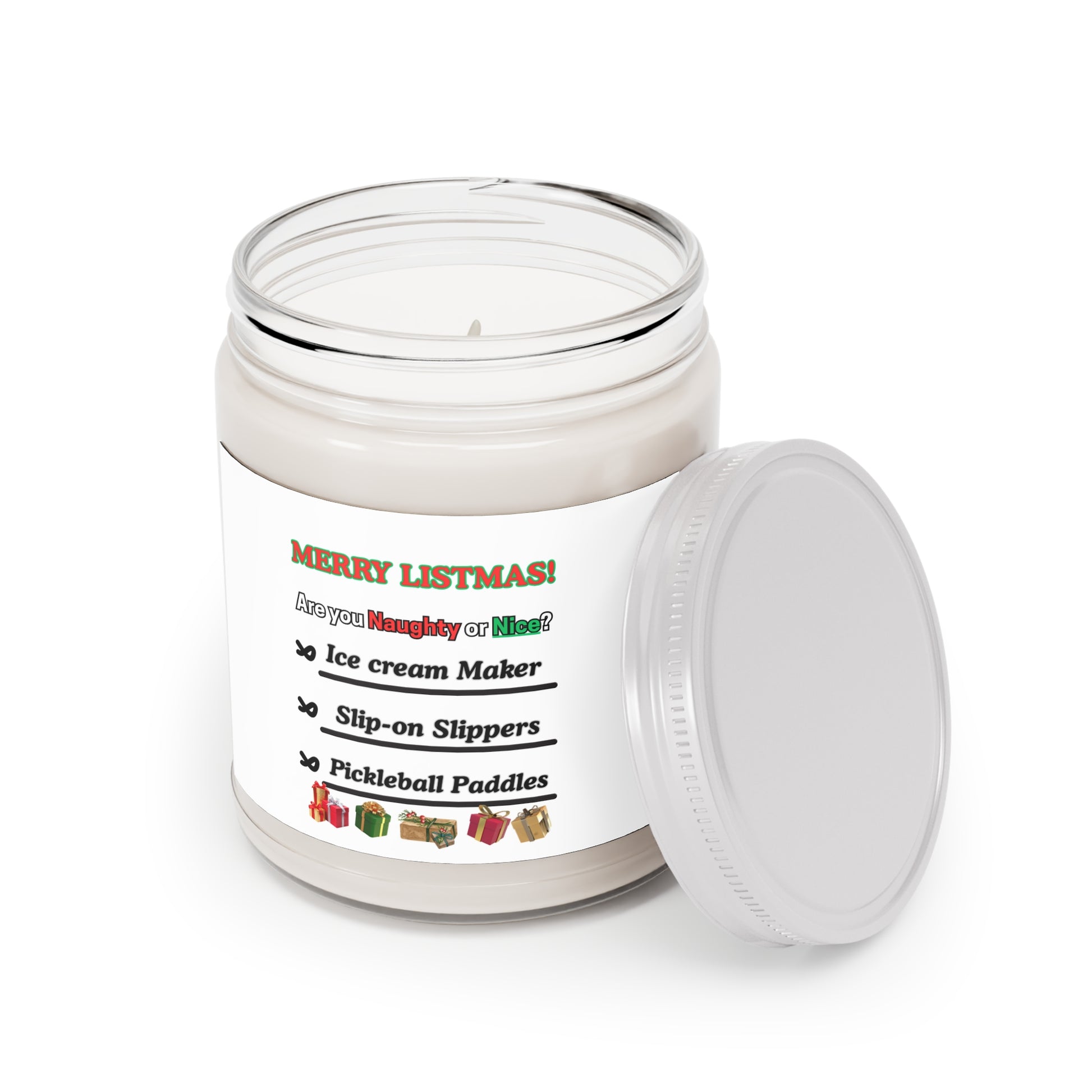 Soy Candle - "Merry Listmas!" Naughty or Nice Holiday Scented Jar (9oz, White Lid)